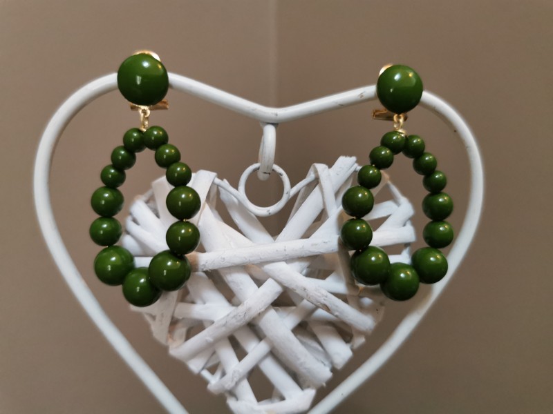 Découvrez notre assortiment de 26 perles rondes en résine opaque, couleur vert olive, de différentes tailles (6-8-10 mm) et 2 cabochons de 12 mm.