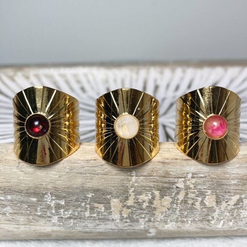 Bague large réglable en laiton recouvert d'un placage or 24 carats d'une épaisseur de 0.3 microns.