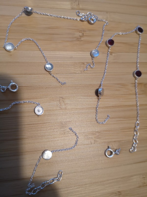 Ce bracelet maille forçat en argent 925 a été conçu pour accueillir quatre cabochons ronds de 4 mm.