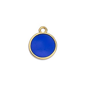 Cette breloque ronde en zamac dorée à l'or fin 24K est recouverte de résine époxy effet vitrail (transparent).