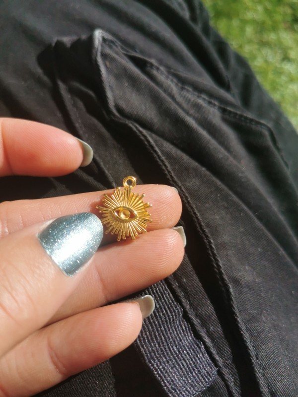 Laissez-vous séduire par cette breloque recouverte d'une finition doré à l'Or fin 24K ! Charmante et facile à porter, elle représente un oeil ajouré et entouré par les rayons du soleil.