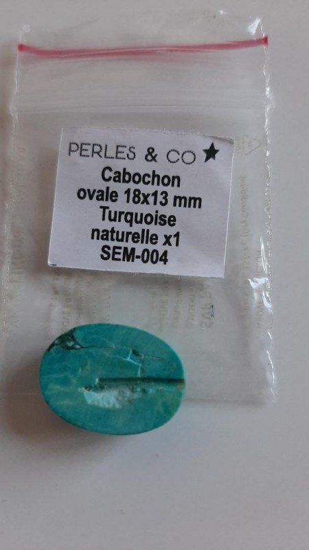 Cabochon Ovale en Turquoise stabilisée, également appelée TIBETAN TURQUOISE. À coller ou à sertir.