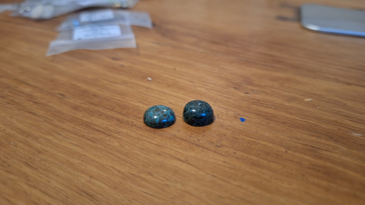 Cabochon rond, également appelée TIBETAN TURQUOISE, en Turquoise stabilisée. À coller ou à sertir.