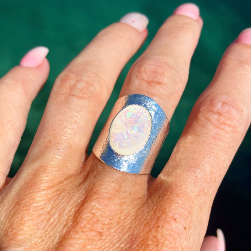 Cabochon en résine imitant l'opale.