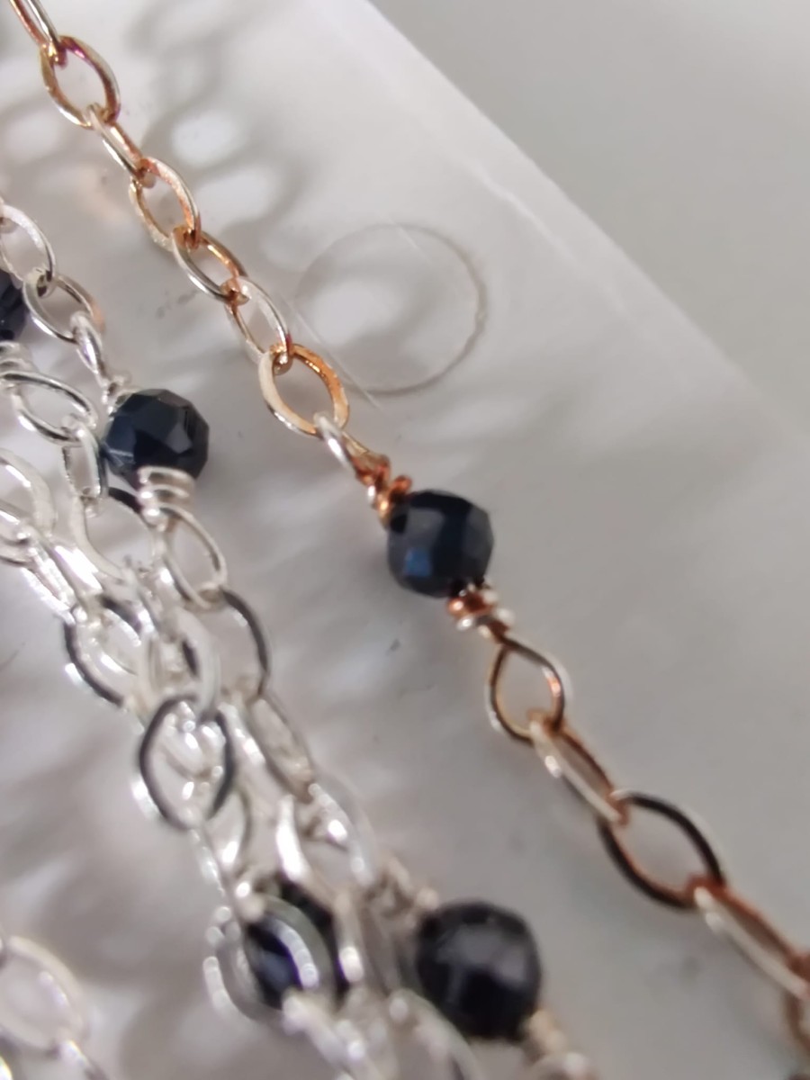 Pour raccorder votre chaîne à des apprêts ou à des composants pour bijoux, nous vous conseillons d'utiliser des anneaux ouverts avec un diamètre de fil de 0.9 mm max.