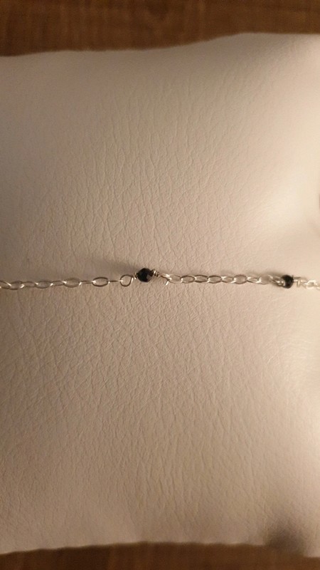 Vous adorerez sa maille fine composée d'anneaux alternés 1/2 avec des perles facettées en onyx noir.