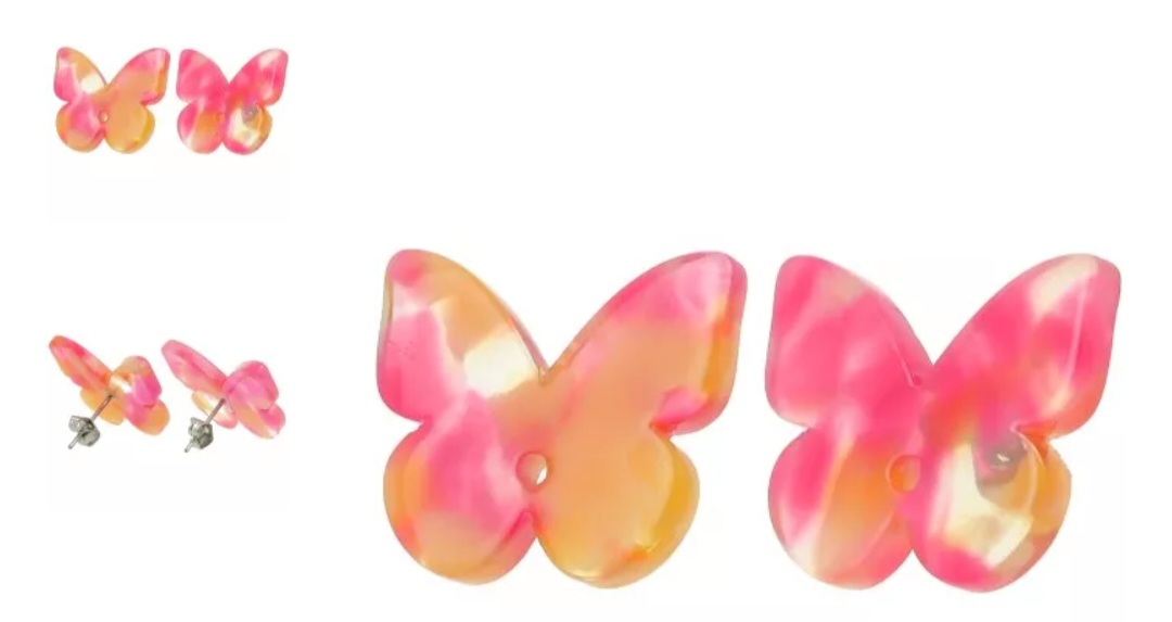 Utilisez ces clous d'oreilles papillons en acétate pour créer des boucles d'oreilles pendantes originales et colorées !