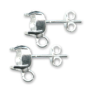Clous d'oreilles couleur argent avec serti pour cabochon rond 1028/1088 8 mm et anneau.