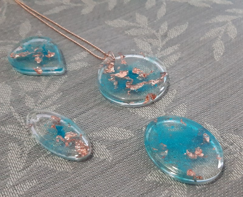 Le nuancier en image additionnelle a été réalisé avec une goutte de colorant liquide et un moule pour cabochon ovale de 3x2 cm.