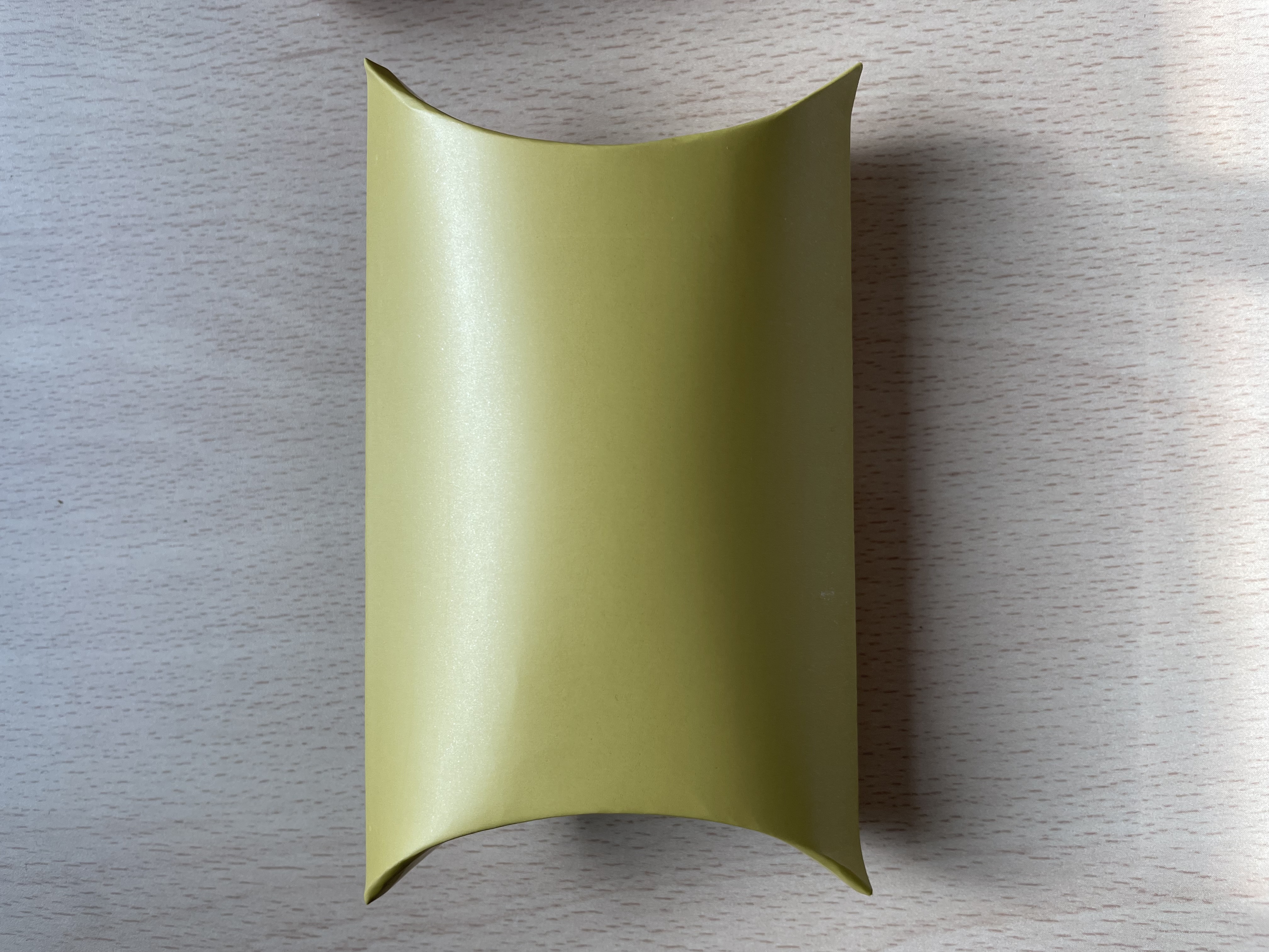 Cet emballage berlingot aussi appelé pochette cadeau ou même boîte oreiller de par sa forme est en carton bronze.