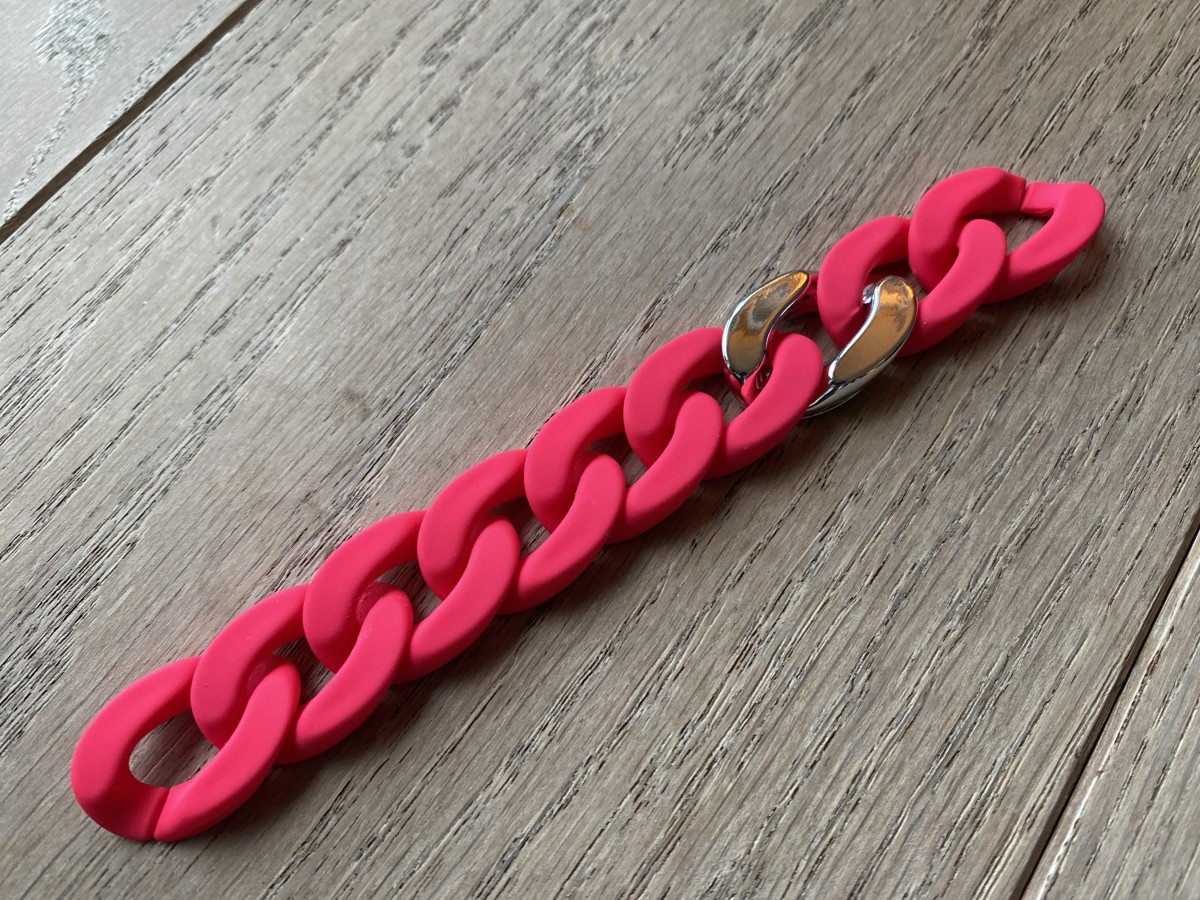 Ce gros maillonouvert se connecte parfaitement avec les autres maillons acryliques. N'hésitez pas à les mixer avec d'autres couleurs pour créer un collier ou un bracelet original.