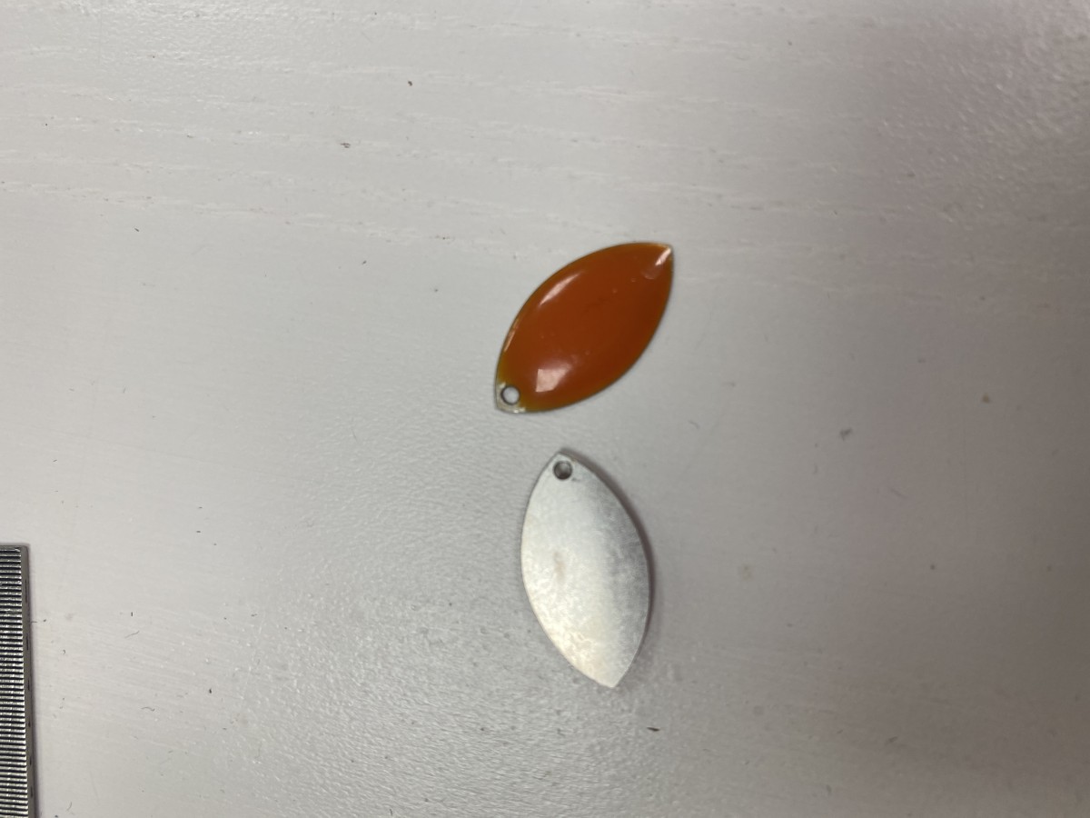 Voici un beau sequin en métal, recouvert de résine époxy Terracotta sur les deux faces.