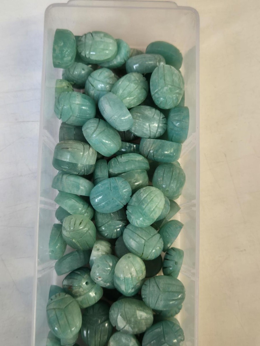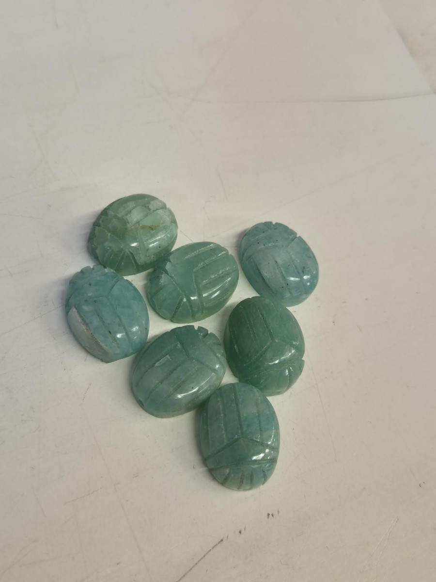 Sublimez vos bijoux fantaisie DIY avec cette perle ovale en Amazonite. Originale et adorable, sa forme de scarabée a été gravée à la main. Ce composant pour bijoux va en surprendre plus d'un !