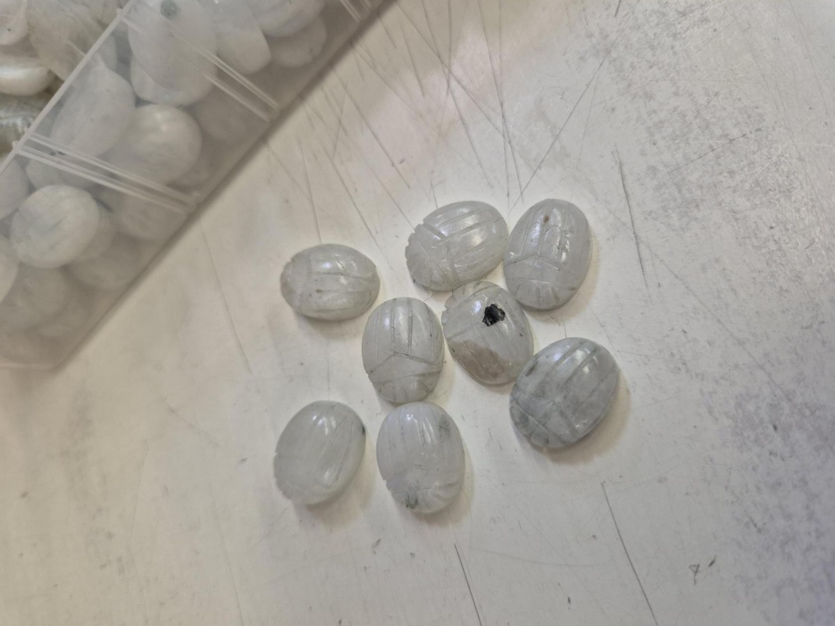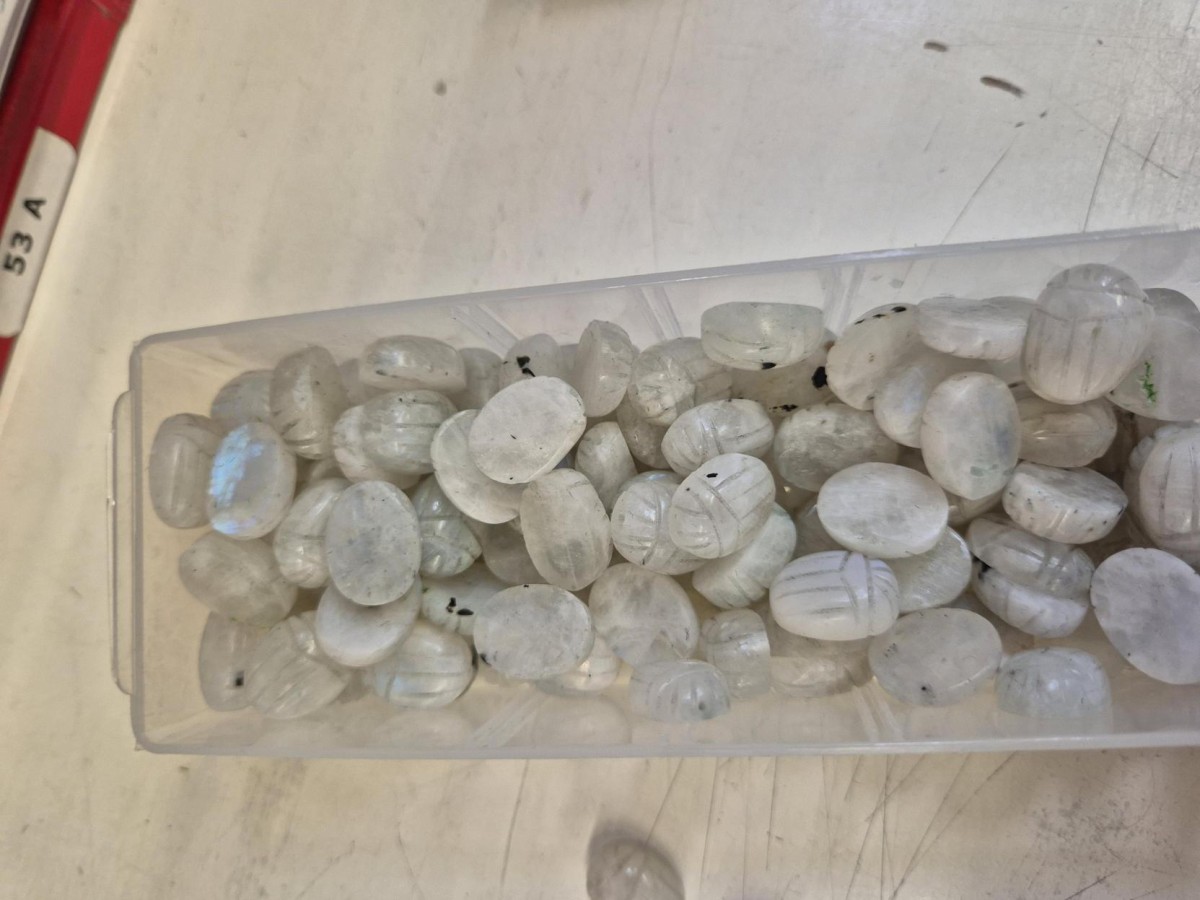 Perle ovale gravée scarabée 16x12 mm en pierre gemme - Pierre de lune x1