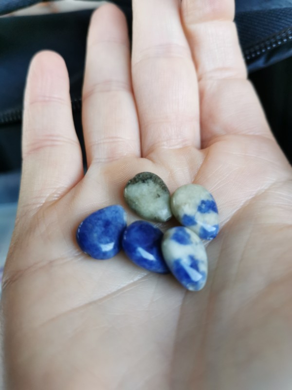 Leur forme douce et arrondie, combinée aux nuances naturelles de bleu profond mêlé de blanc et de gris, en fait un choix raffiné pour vos bijoux faits main.