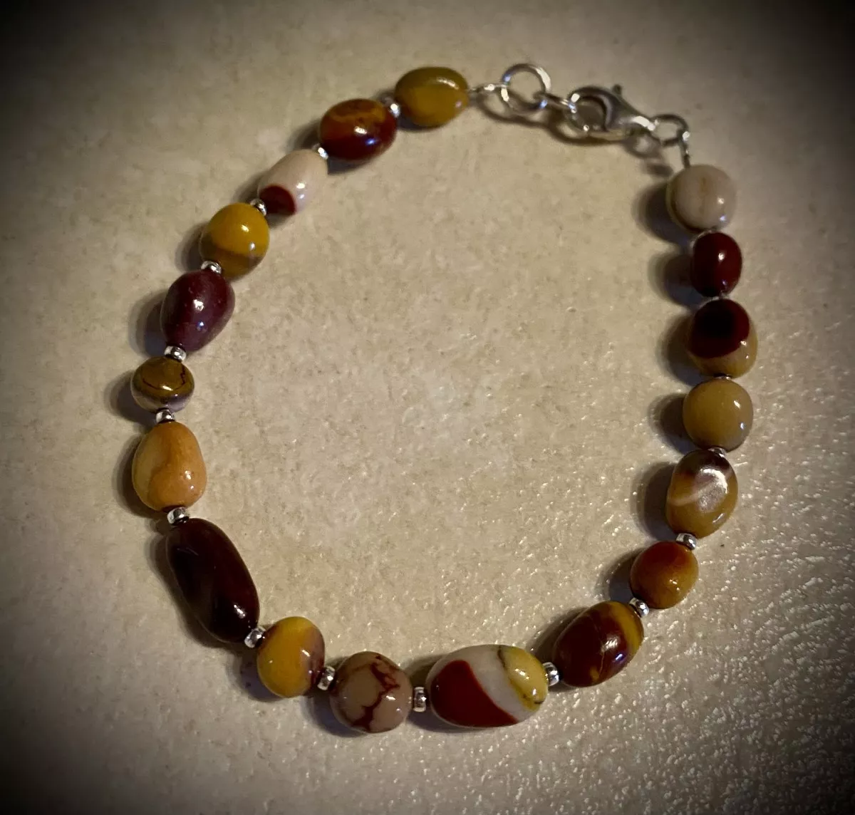 Le saviez-vous ? Le nom de cette pierre fine (autrefois on disait "pierre semi-précieuse") fait référence à la région où il a été découvert : le Mooka Creek en Australie. D'où son autre nom : le jaspe australien ! Il possède de nombreuses couleurs, allant d'une teinte crème au brun, en passant par le jaune, le violet ou encore le rouge.