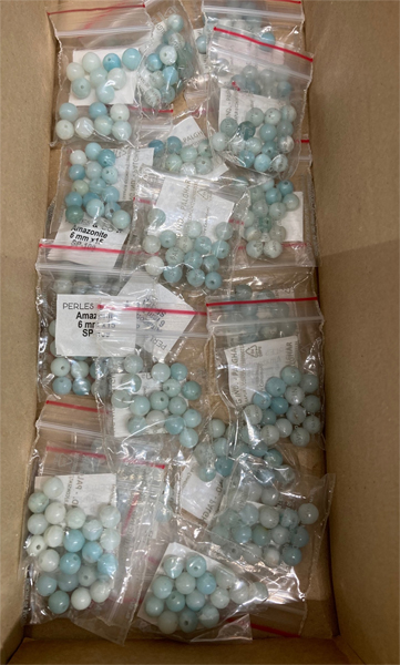 Je connais un peu les pierres fines, et l'amazonite de qualité possède une couleur bien plus intéressante. Sur une même perle, on a des strates de couleur d'un bleu quasi turquoise (à gauche sur la photo, achetées sur un autre site marchand).