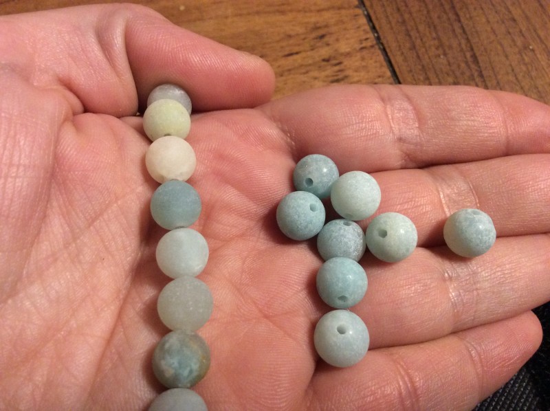 3. Utilisez du fil élastique puis enfilez ces pierres gemmes. Vous obtiendrez un bracelet en Amazonite. Nous vous donnons des conseils pour choisir le bon fil élastique et faire un noeud sur élastique.