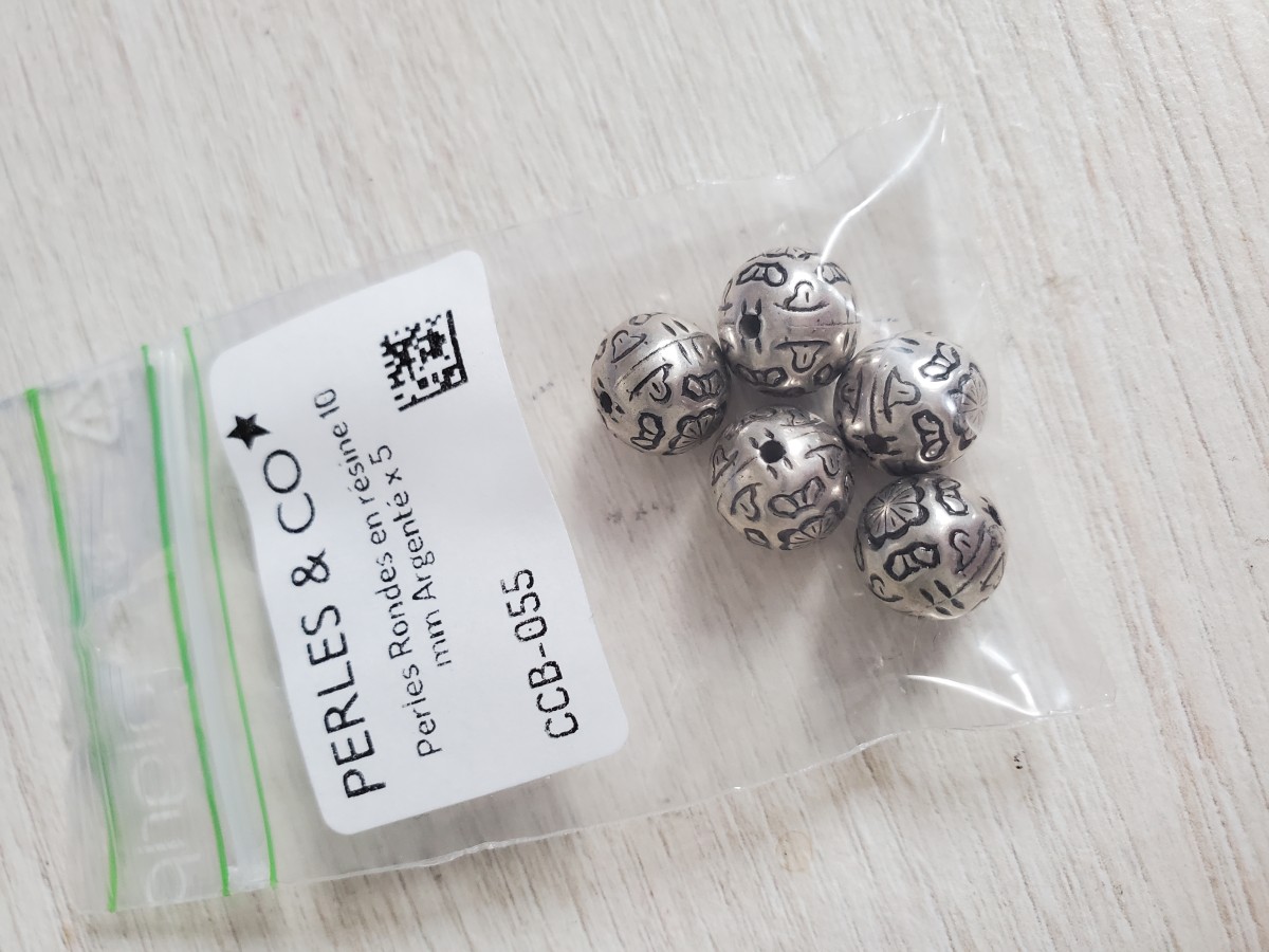 Perles en résine CCB recouverts d'une galvanisation métallique.