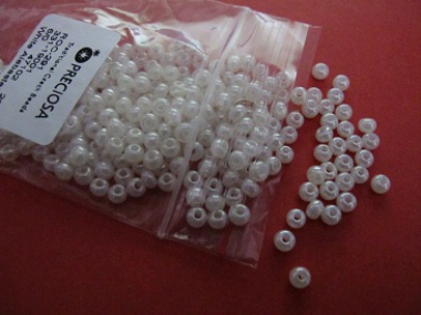 Rocaille de taille 6/0 (environ 2.5 mm dans le sens du trou, de 3.7 à 4 mm de diamètre).