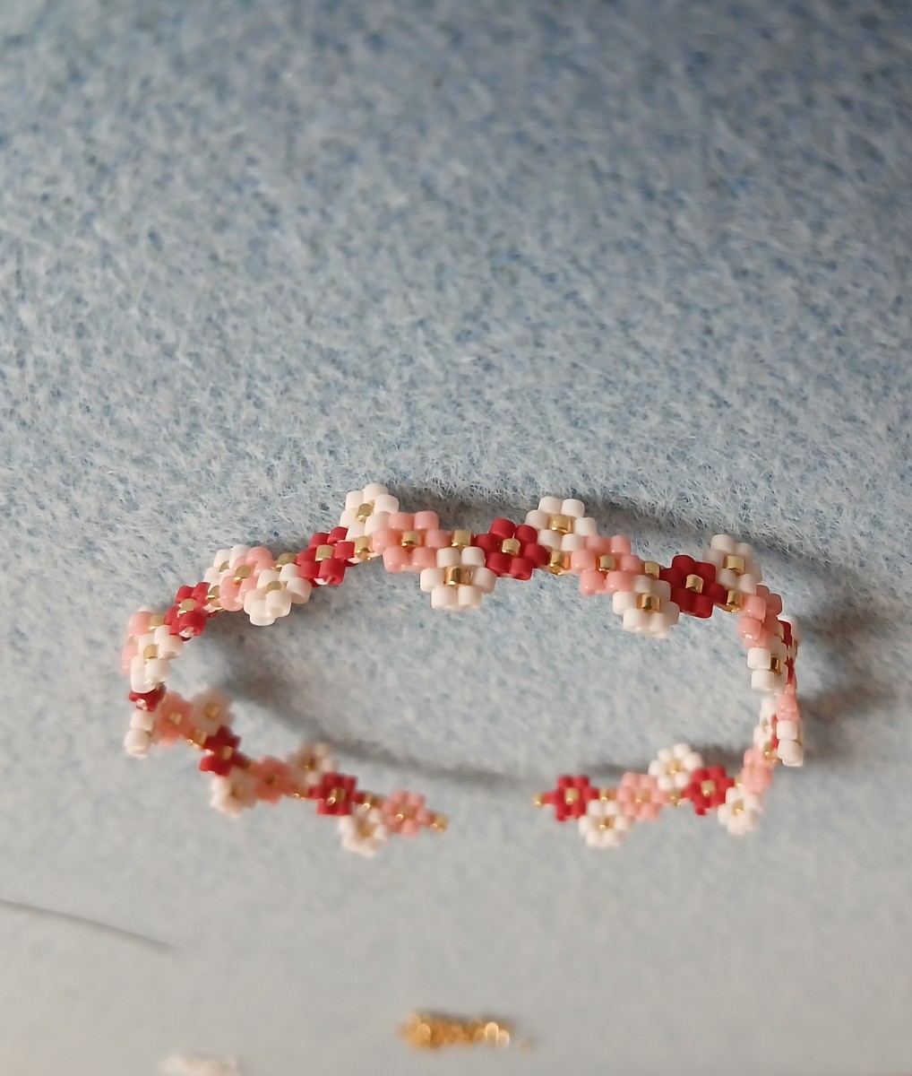 Retrouvez le matériel et le schéma du Bracelet Fleurs en Brick Stitch réalisé dans la vidéo en bas de la page.
