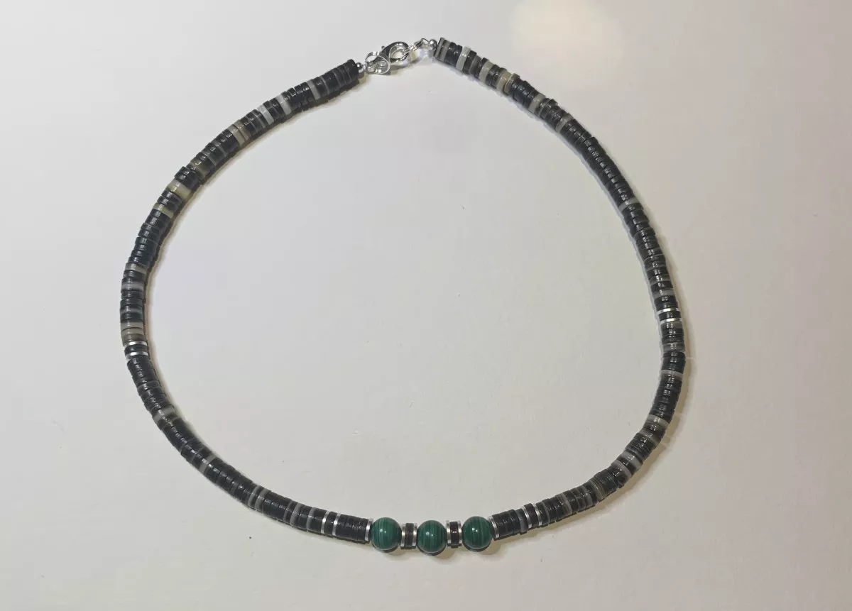 Ces perles sont idéales pour créer un collier masculin près du cou d'autant plus qu'elles sont top tendance depuis un an. Le combo parfait masculin est de rajouter aux perles nacres quelques pierres au centre du collier avec de l'œil de tigre teinté en vert, ce qui leur donne une allure originale entre la couleur de la malachite et les reflets naturels d’œil de tigre.