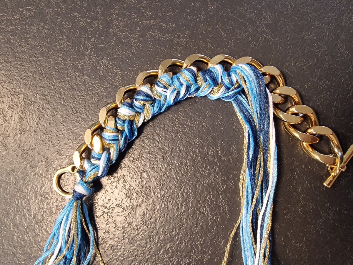 Commencez par couper la chaine à la longueur souhaitée. Prenez un peu plus court que le diamètre de votre poignet car le fermoir est assez large.